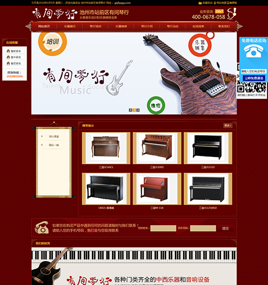 池州市站前區有間琴行目前擁有5個(gè)培訓教室和優(yōu)秀培訓師若干。經(jīng)營(yíng)各種門(mén)類(lèi)齊全的中西樂(lè )器和音響設備的專(zhuān)業(yè)琴行,代理經(jīng)銷(xiāo)國內外知名品牌,同時(shí)從事音樂(lè )培訓和樂(lè )器維修業(yè)務(wù)。
