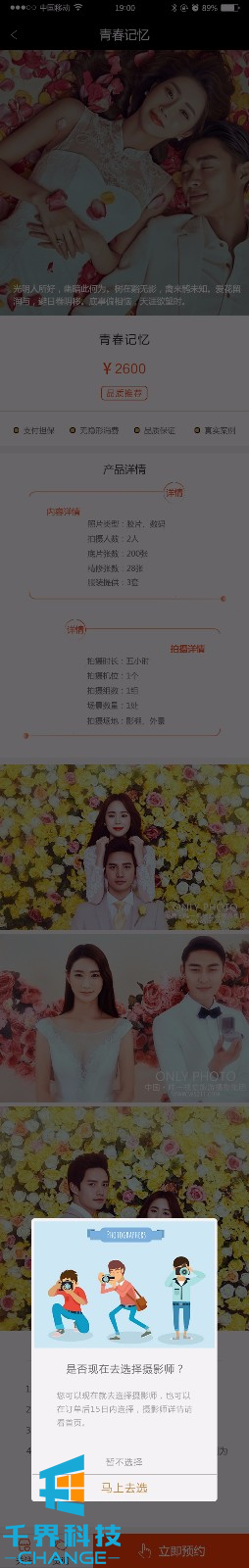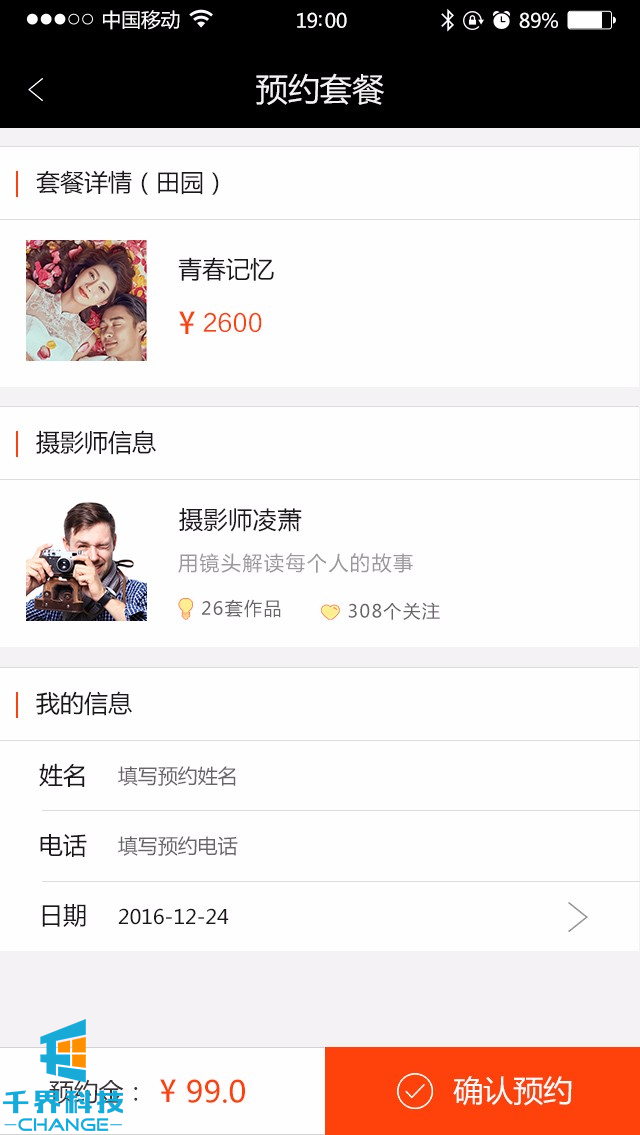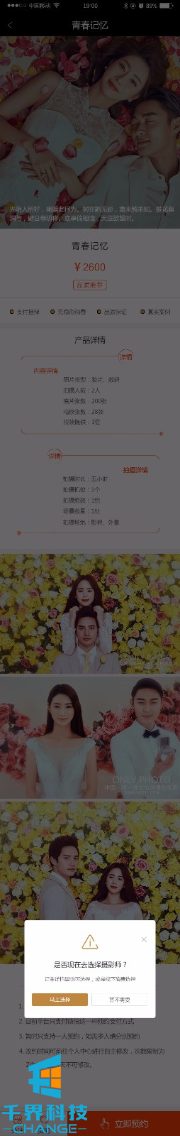 該平臺是一個(gè)多商家的攝影行業(yè)預約平臺,包含套餐分類(lèi)、套餐預約購買(mǎi)、攝影師預約、預約拍照時(shí)間,攝影師作品展示,關(guān)注人數等攝影預約平臺。
