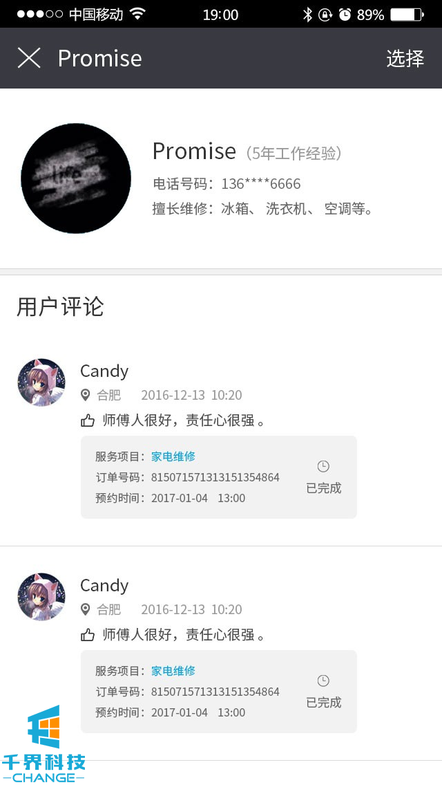 該項目是維修行業(yè)預約下單平臺,分為師傅端和用戶(hù)端,用戶(hù)可查看師傅信息,可以在線(xiàn)約師傅