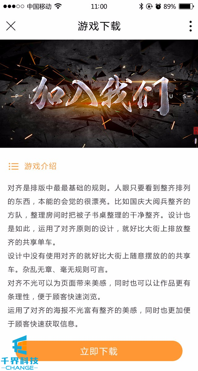 一款游戲官網(wǎng)小程序,包含公司介紹、下載二維碼、關(guān)于我們、加入我們等等