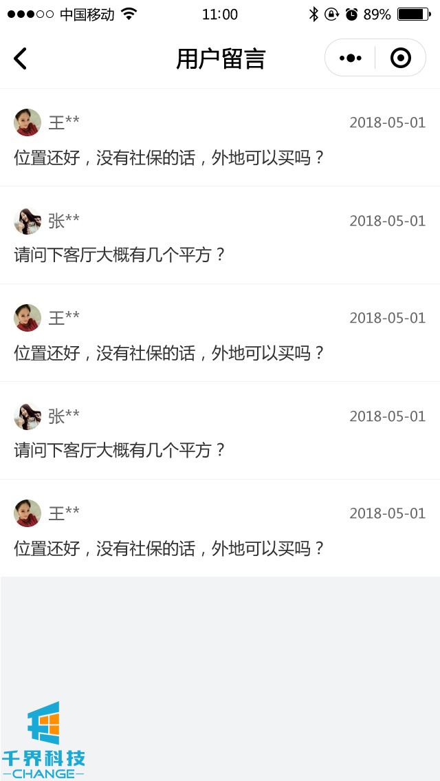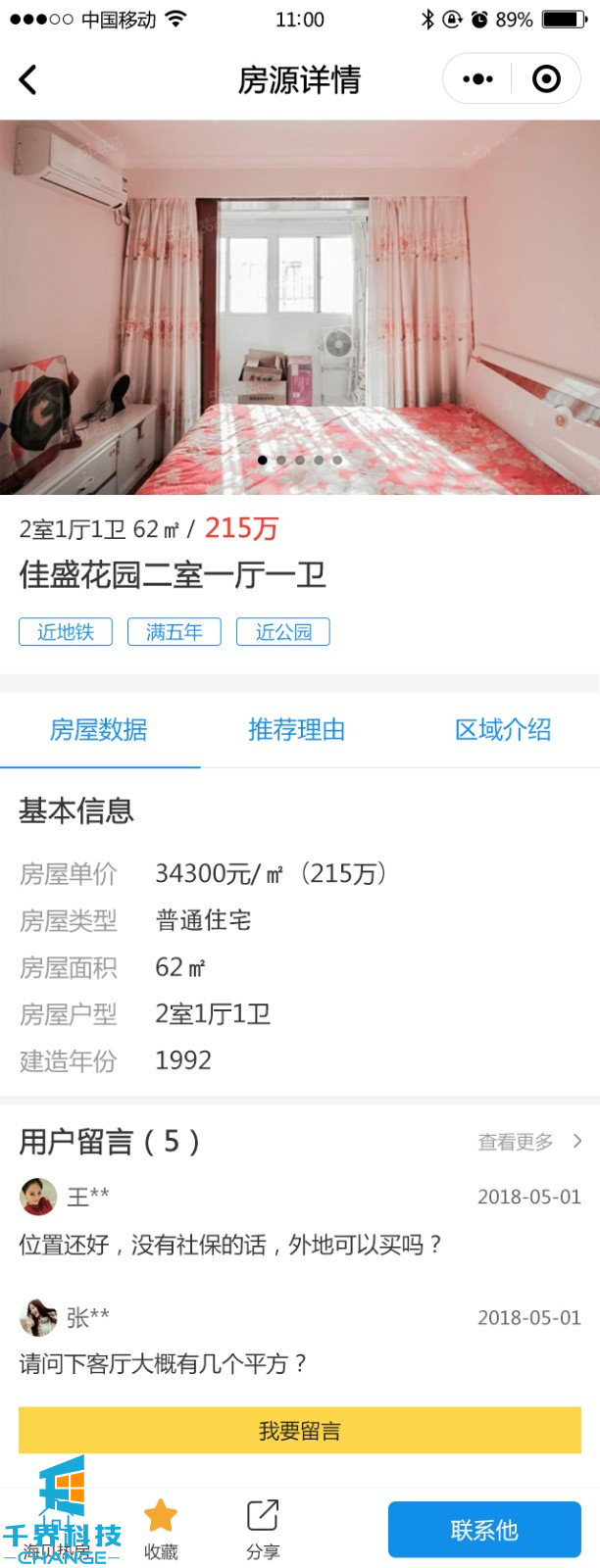 該項目是一個(gè)房源信息展示的小程序,里面包含房源展示,條件篩選,房源分類(lèi),在線(xiàn)問(wèn)答,用戶(hù)留言等功能