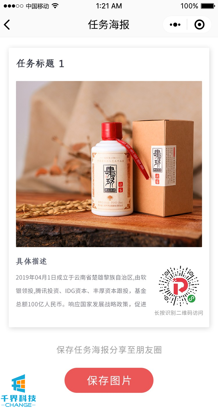 項目名稱(chēng):白酒分銷(xiāo)任務(wù)返利小程序 項目類(lèi)型:小程序