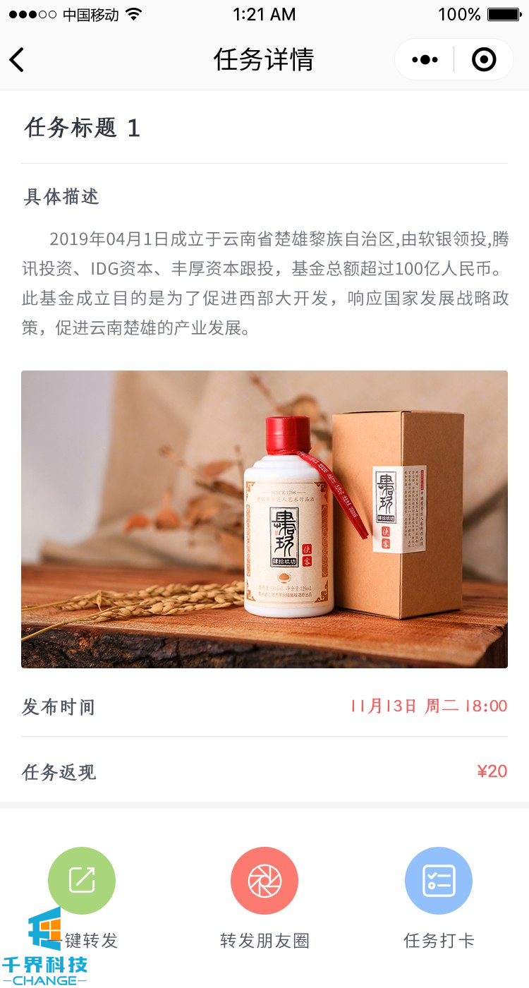 白酒分銷(xiāo)任務(wù)返利小程序
