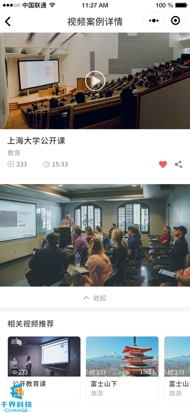 該項目為視頻及圖片案例展示平臺,包含了視頻、圖片展示,收藏,分享。企業(yè)展示等功能