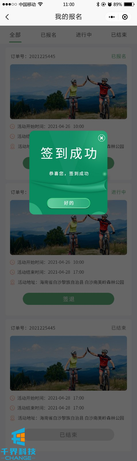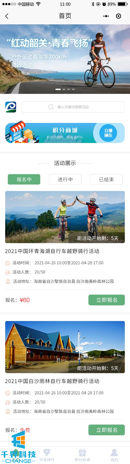 該項目是一個(gè)體育活動(dòng)報名小程序,主要功能有活動(dòng)報名、掃碼簽到、簽到積分、排行獎勵、積分兌換等功能。