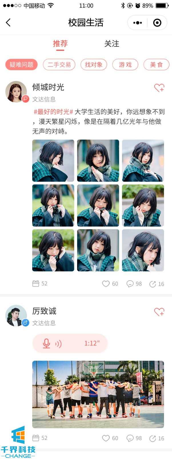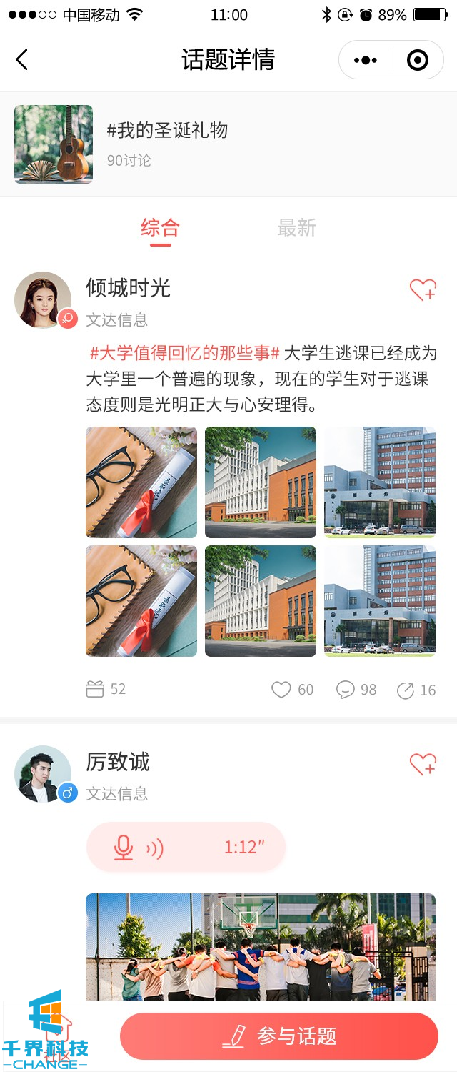 一款針對學(xué)生的綜合社交平臺,包含話(huà)題、點(diǎn)贊、分享、個(gè)人空間、在線(xiàn)簽到、完成任務(wù)、心靈社區等等