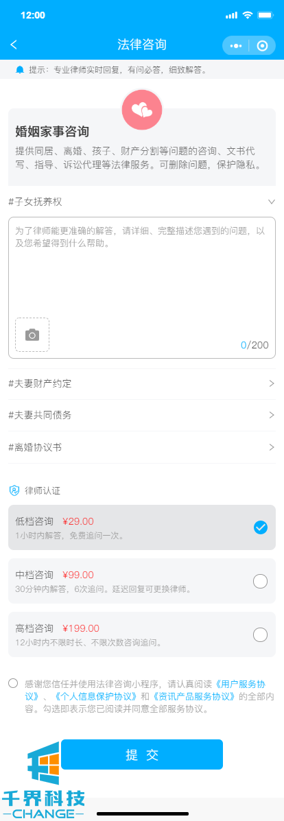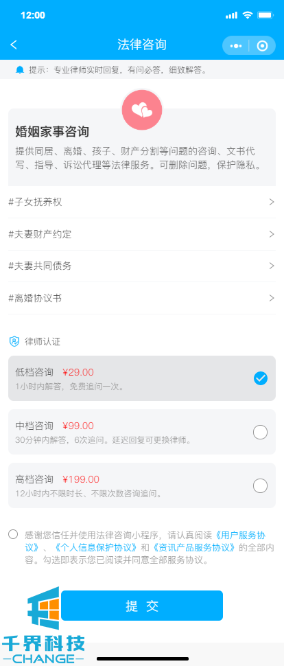 項目名稱(chēng):法律付費咨詢(xún)小程序 項目類(lèi)型:小程序