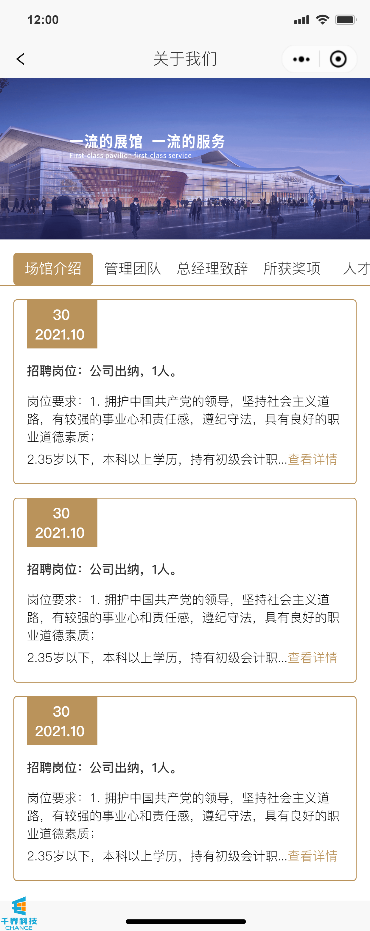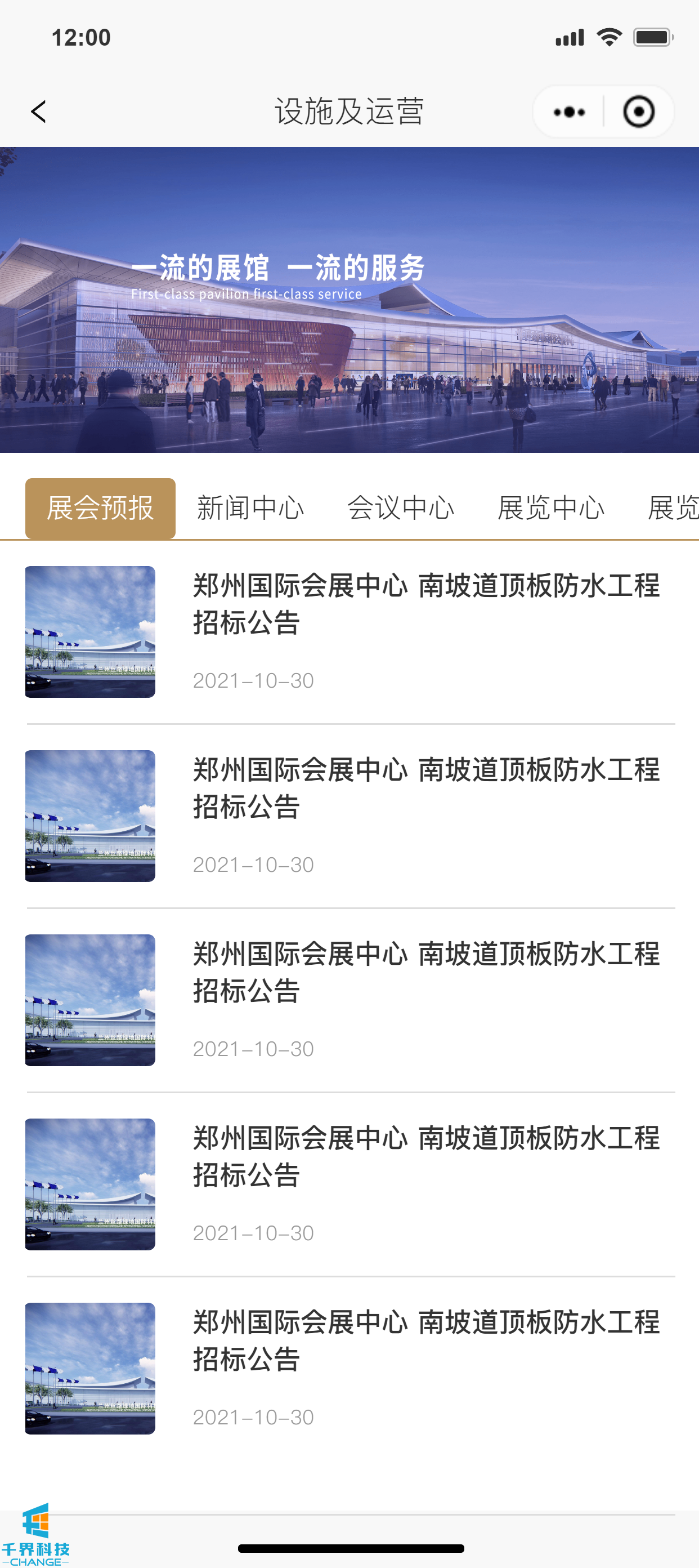 項目名稱(chēng):會(huì )展中心展示網(wǎng)站 項目類(lèi)型:小程序