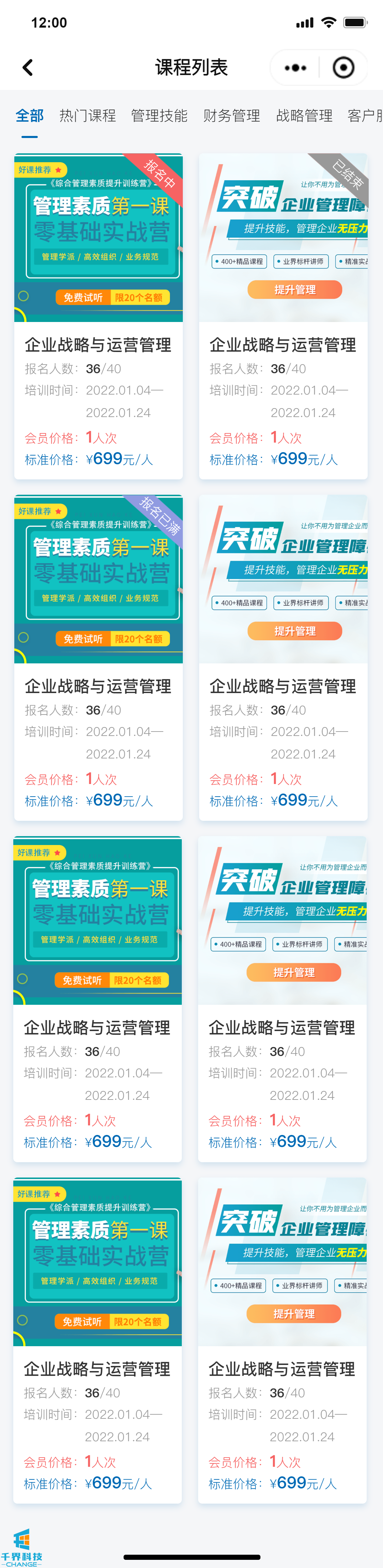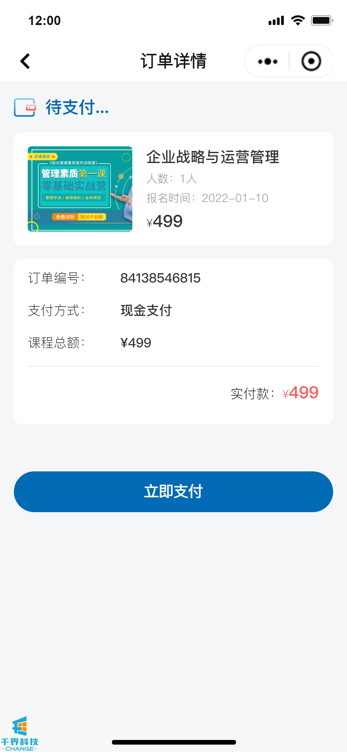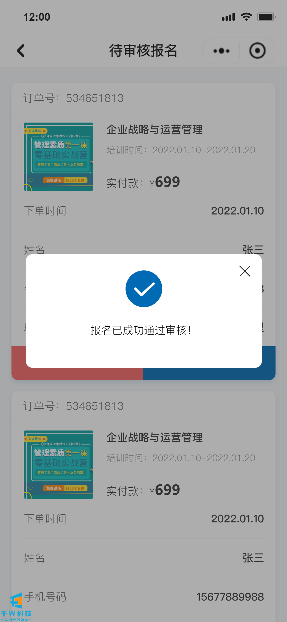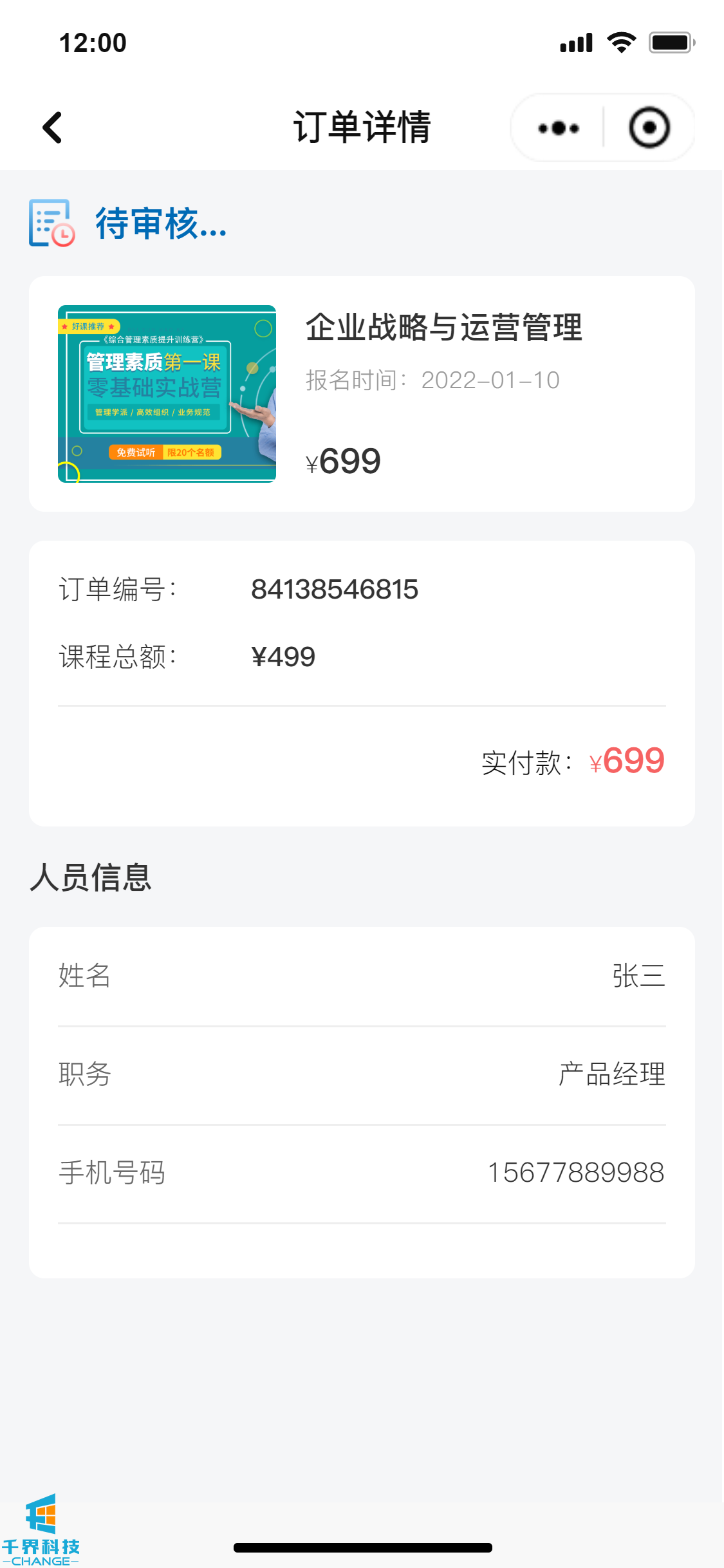 該項目是一個(gè)線(xiàn)下課程報名的小程序,分為學(xué)員端口和企業(yè)管理員端口,可在線(xiàn)進(jìn)行報名操作,線(xiàn)下支付費用,企業(yè)管理員和后臺帶有數據統計功能,根據課程、學(xué)員維度統計實(shí)際的報名情況