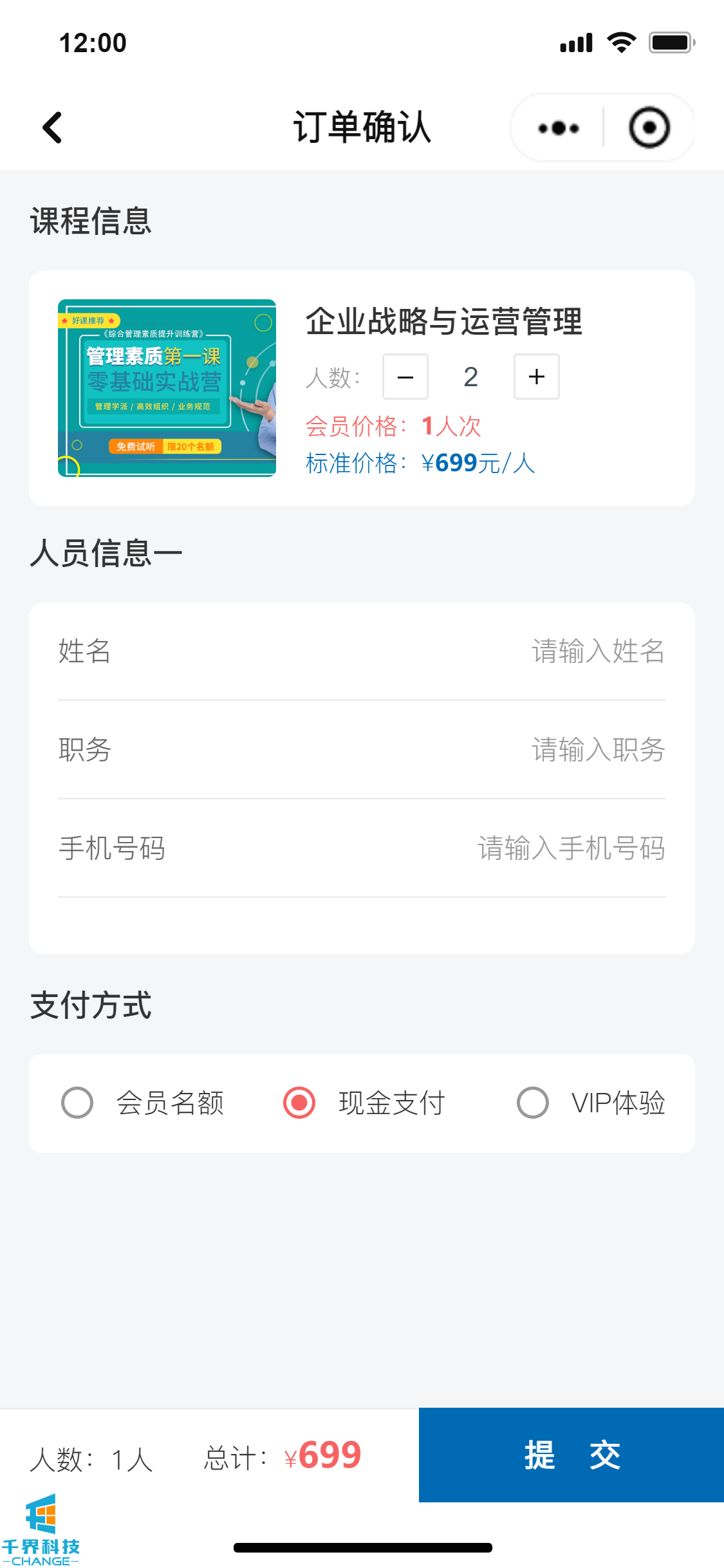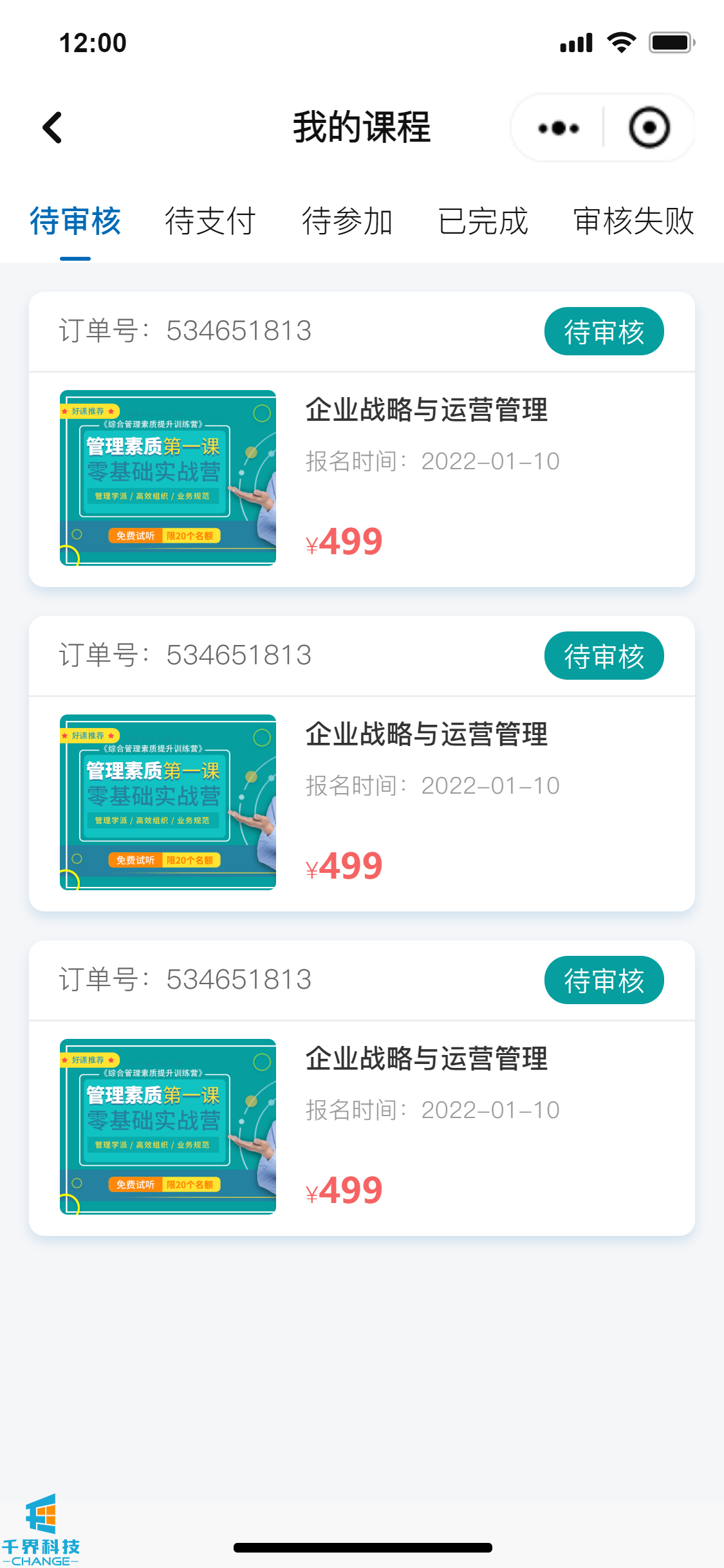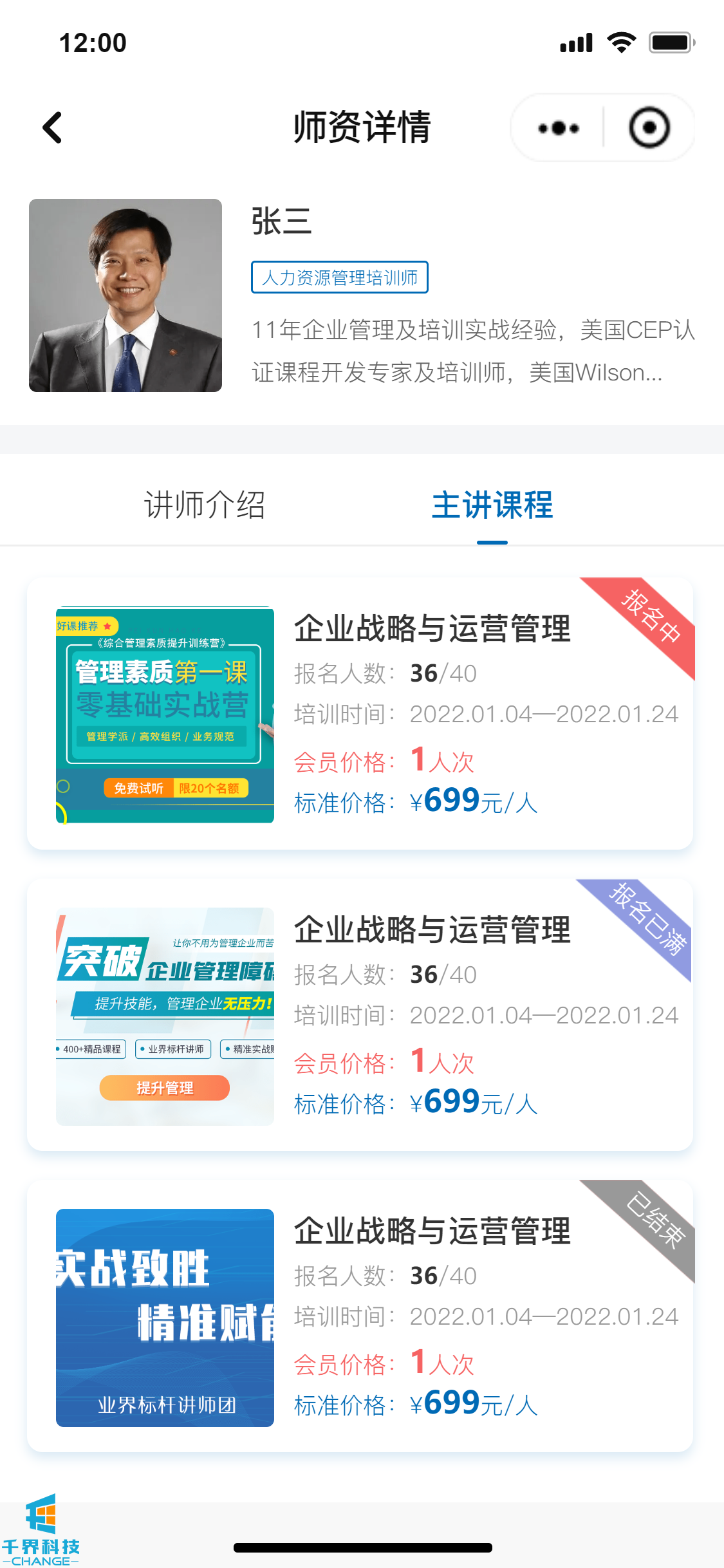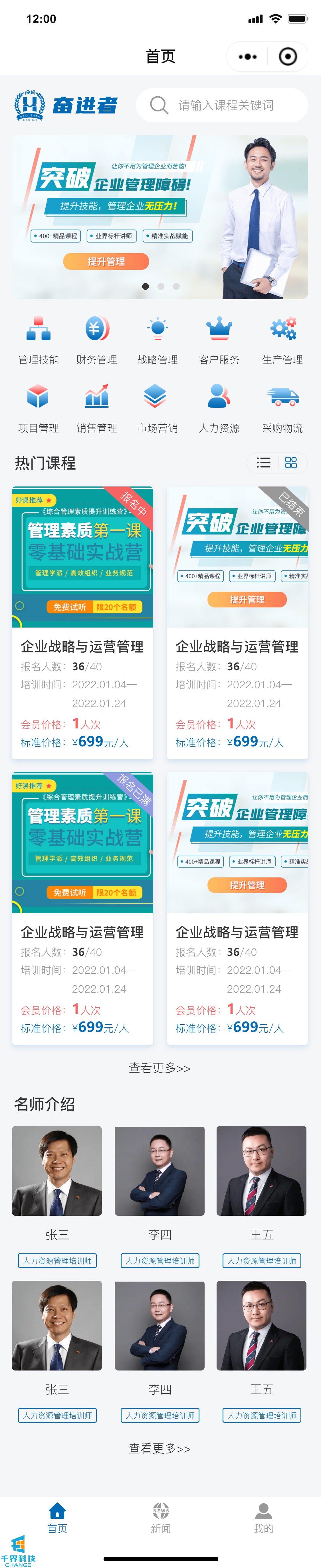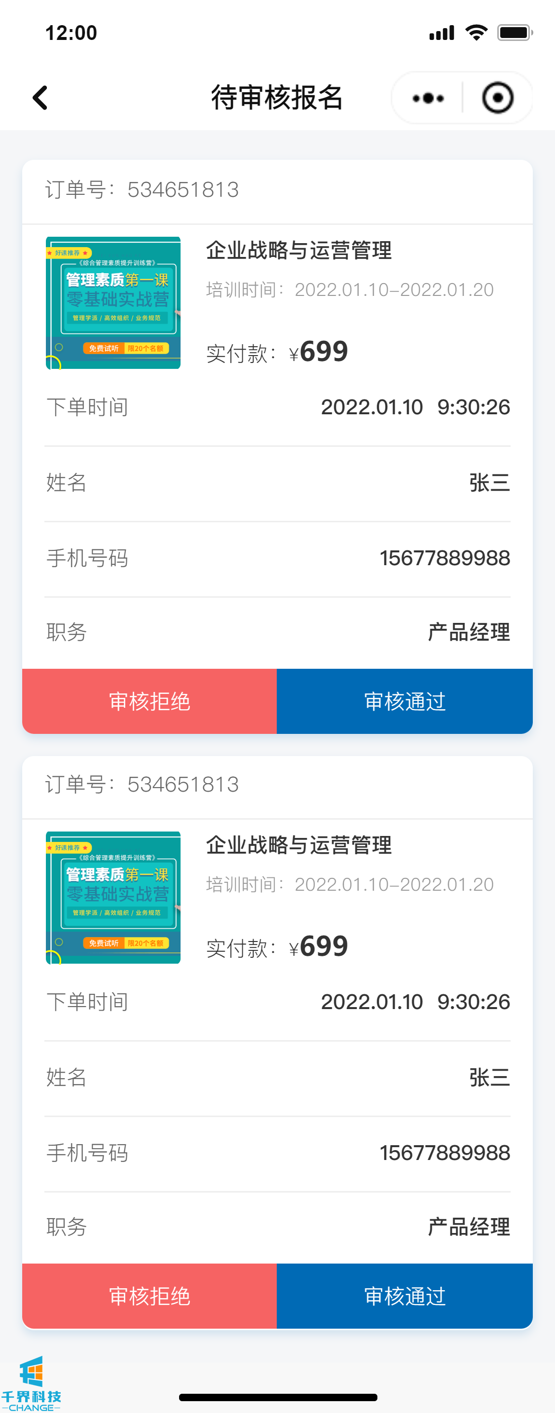 該項目是一個(gè)線(xiàn)下課程報名的小程序,分為學(xué)員端口和企業(yè)管理員端口,可在線(xiàn)進(jìn)行報名操作,線(xiàn)下支付費用,企業(yè)管理員和后臺帶有數據統計功能,根據課程、學(xué)員維度統計實(shí)際的報名情況