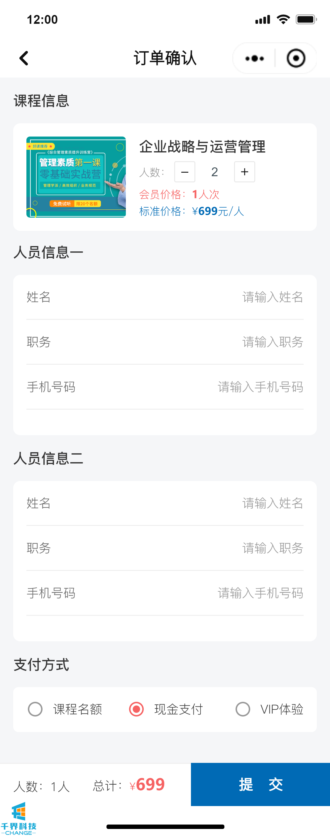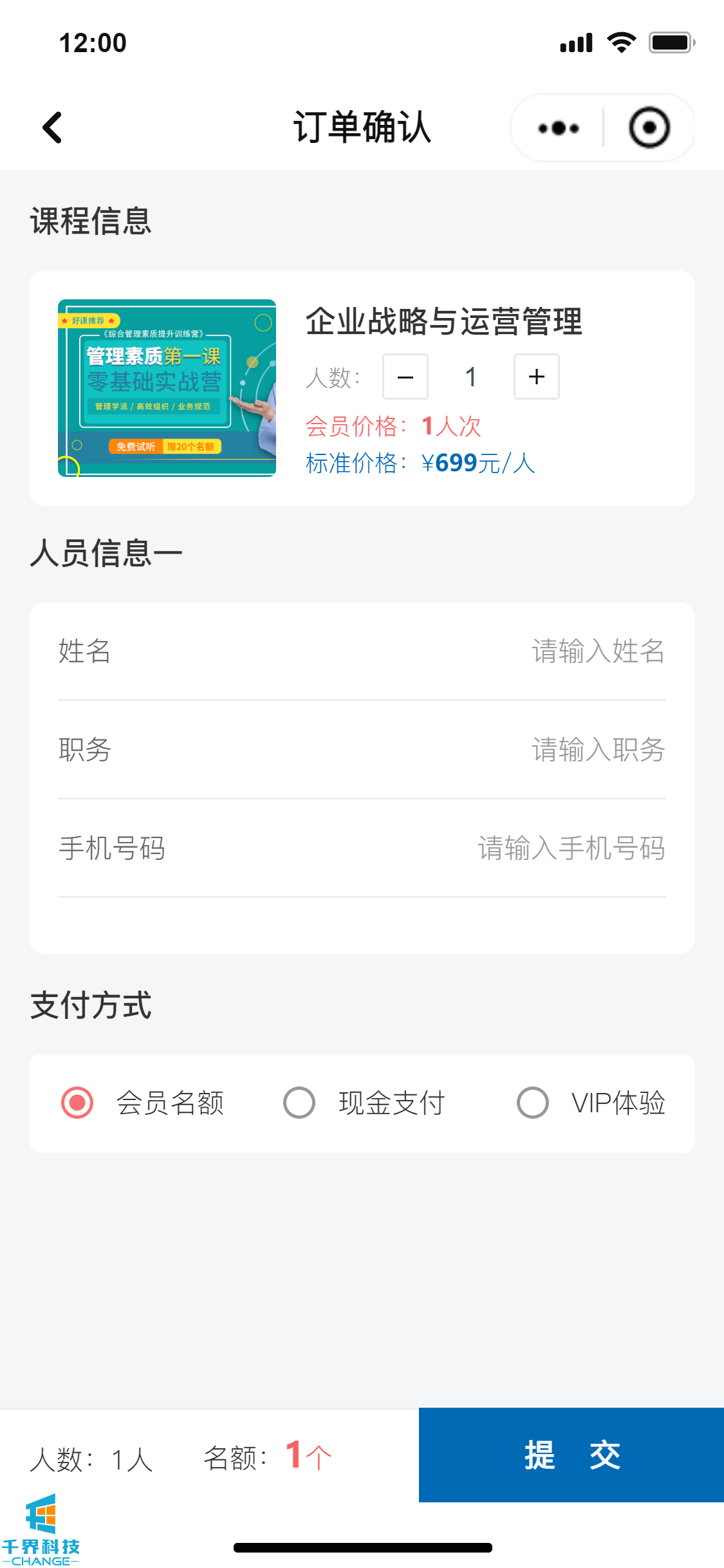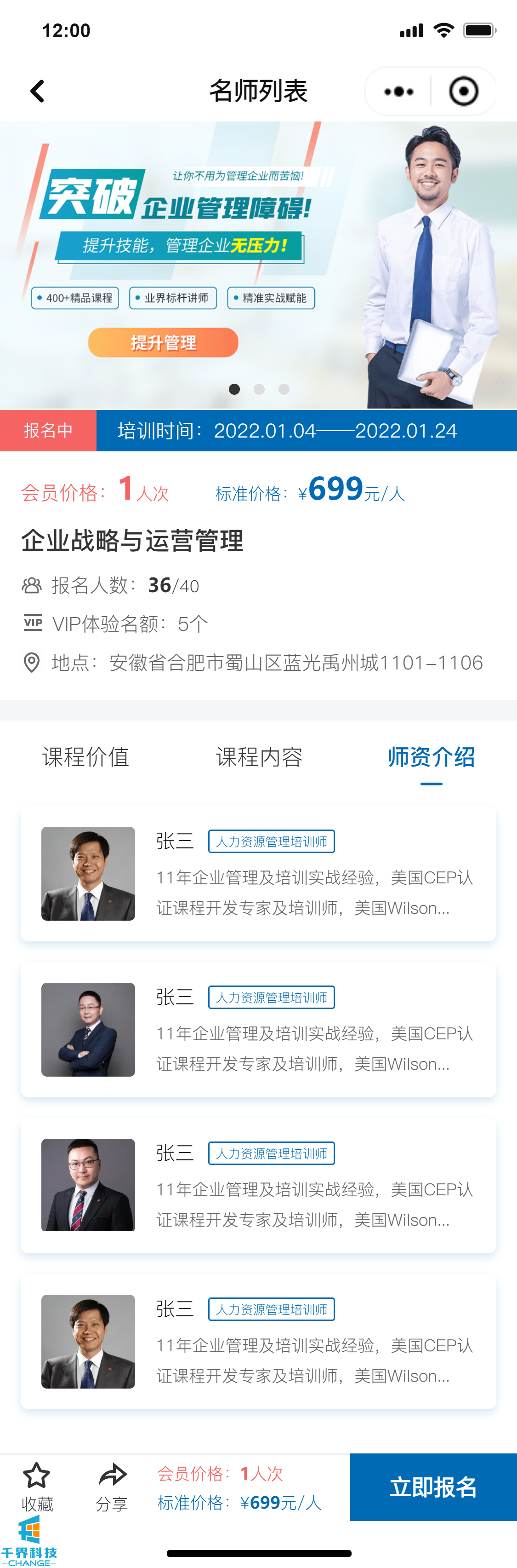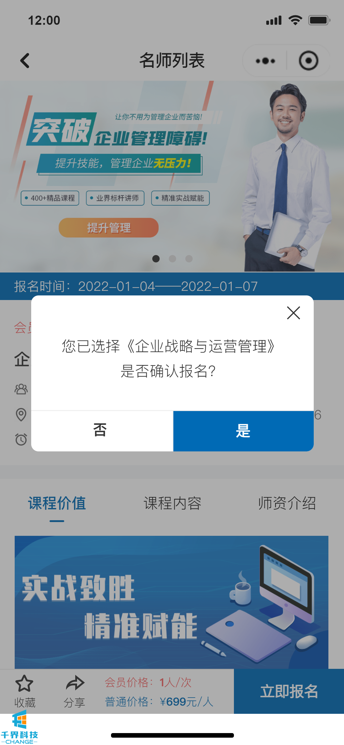 該項目是一個(gè)線(xiàn)下課程報名的小程序,分為學(xué)員端口和企業(yè)管理員端口,可在線(xiàn)進(jìn)行報名操作,線(xiàn)下支付費用,企業(yè)管理員和后臺帶有數據統計功能,根據課程、學(xué)員維度統計實(shí)際的報名情況