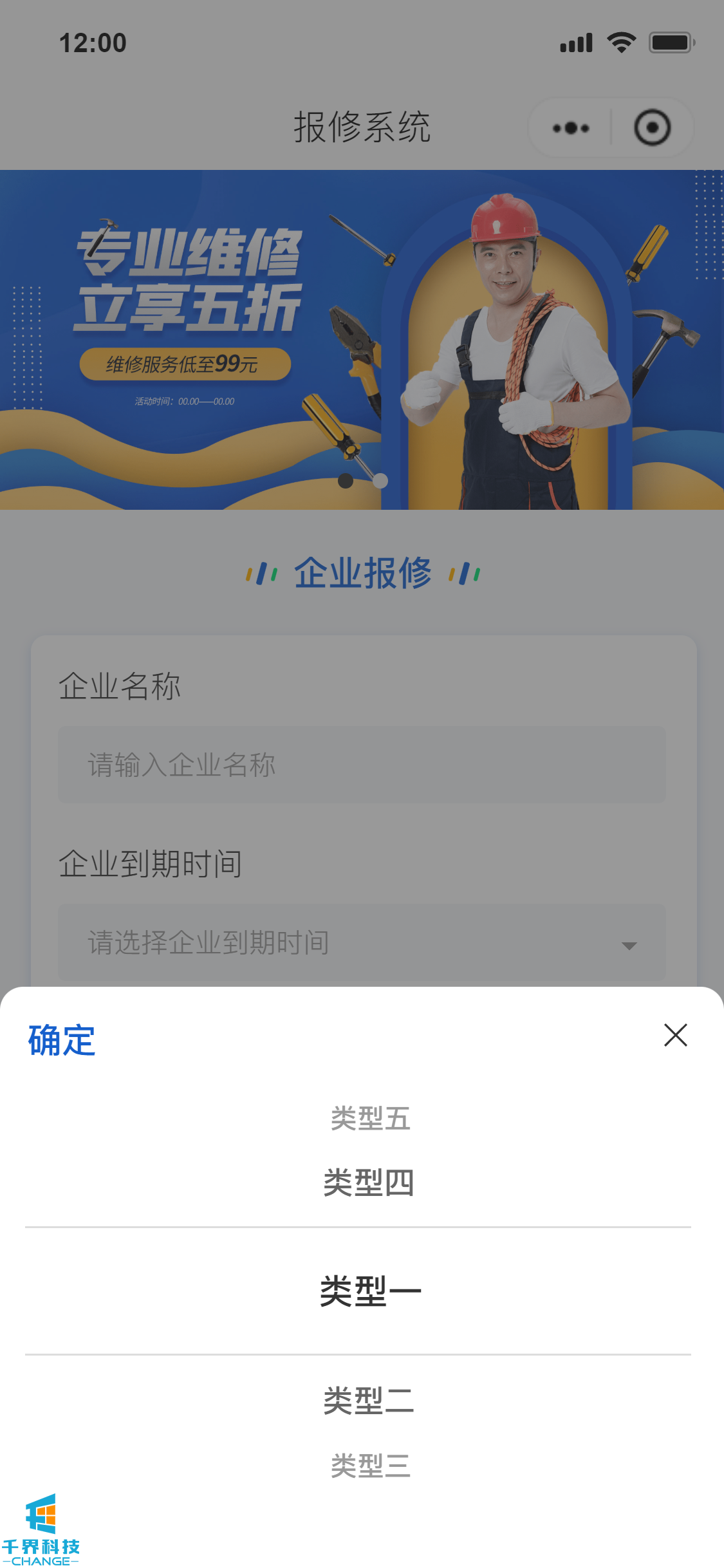 該項目是一個(gè)企業(yè)報修小程序,后臺創(chuàng )建企業(yè),錄入企業(yè)聯(lián)系人,企業(yè)聯(lián)系人才有權限在前端進(jìn)行報修,企業(yè)可以續費,到期后無(wú)法報修