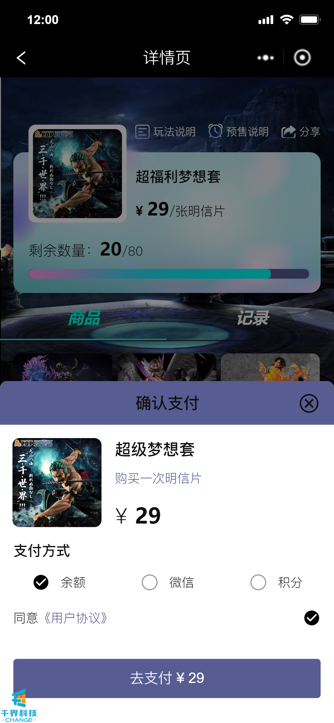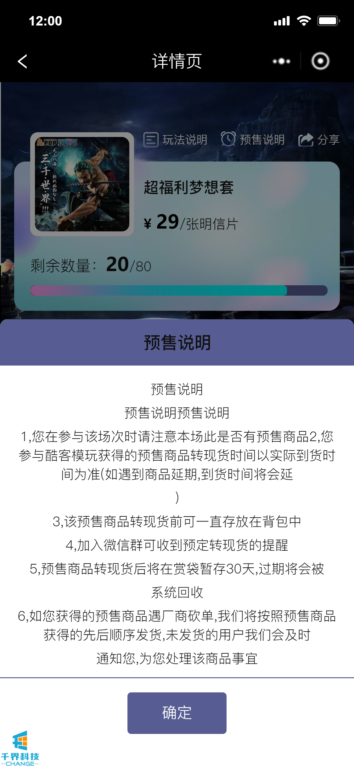 該項目是一個(gè)盲盒抽獎小程序,后臺可以創(chuàng )建多個(gè)抽獎活動(dòng)配可以配置獎品數量,用戶(hù)付費進(jìn)行抽獎并有幾率獲得額外附贈賞