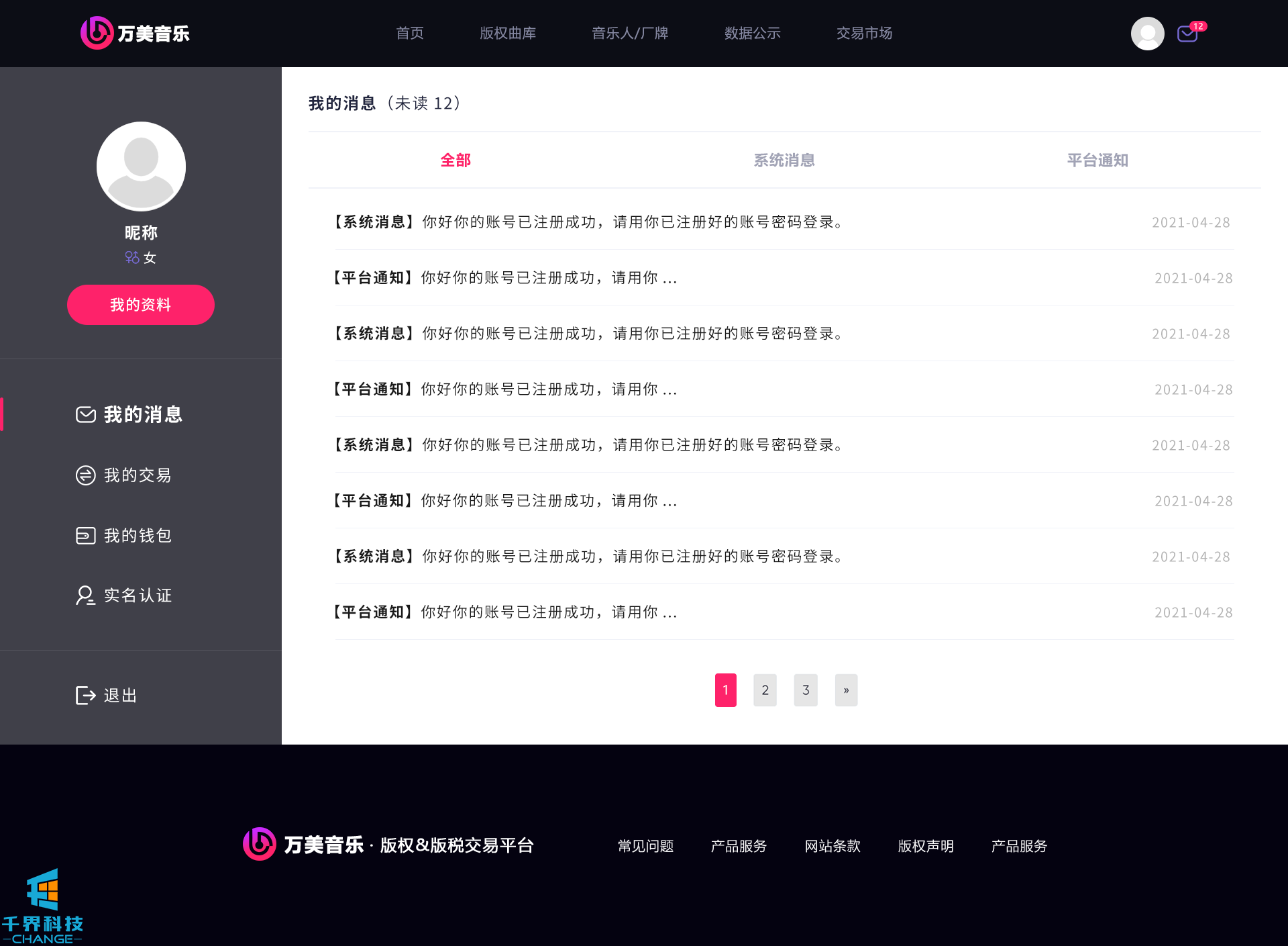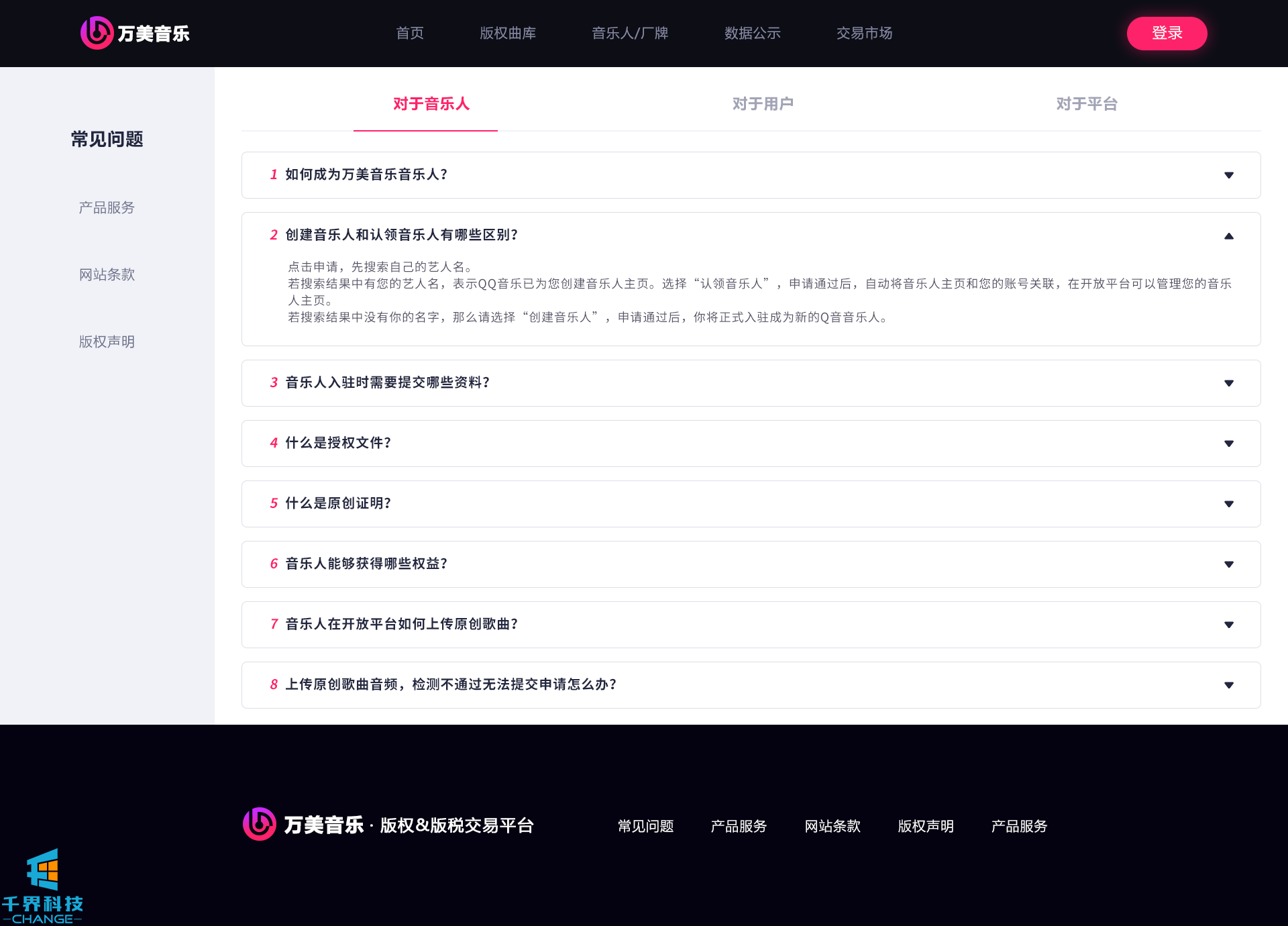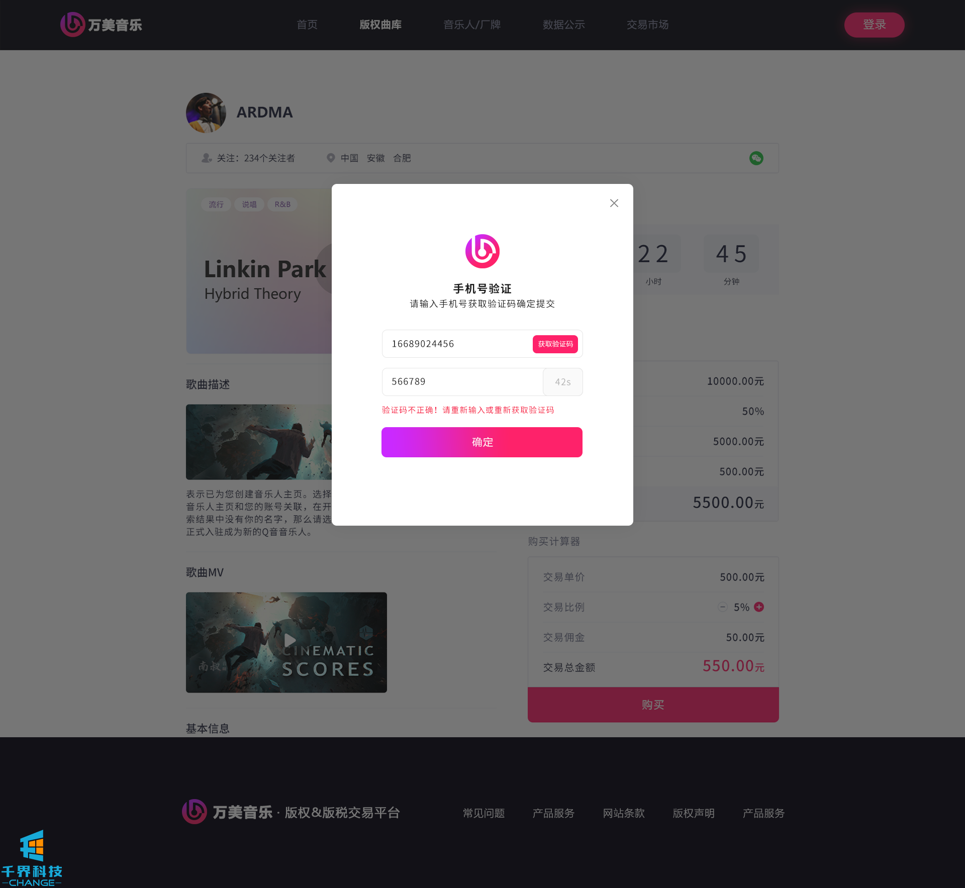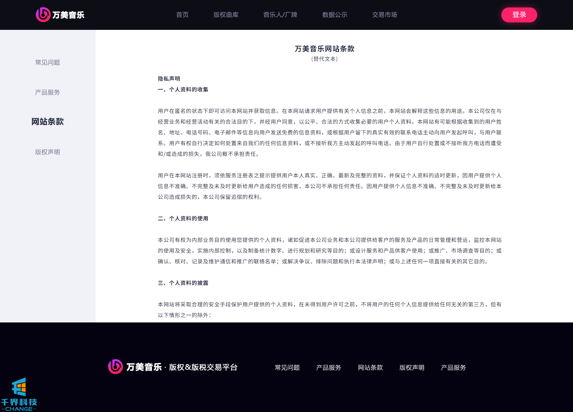 該項目是一個(gè)音樂(lè )網(wǎng)站版權交易網(wǎng)站,音樂(lè )人或者公司可以在網(wǎng)站上出售自己的創(chuàng )作的音樂(lè ),普通用戶(hù)可以通過(guò)購買(mǎi)對應版權,平臺后期會(huì )根據對應的版稅收入給到購買(mǎi)版權的普通用戶(hù)獎勵。