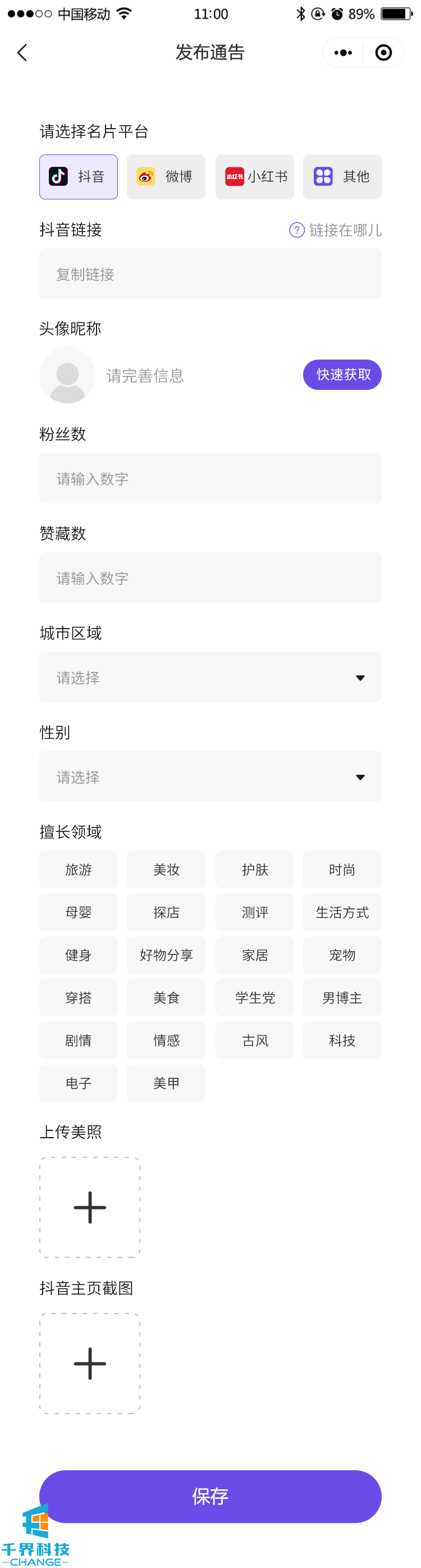 該項目是一個(gè)通告發(fā)布接單平臺,用戶(hù)可以在平臺進(jìn)行發(fā)布通告,接單者可以在平臺認證不同領(lǐng)域的博主身份,認證通過(guò)之后可以進(jìn)行接單
