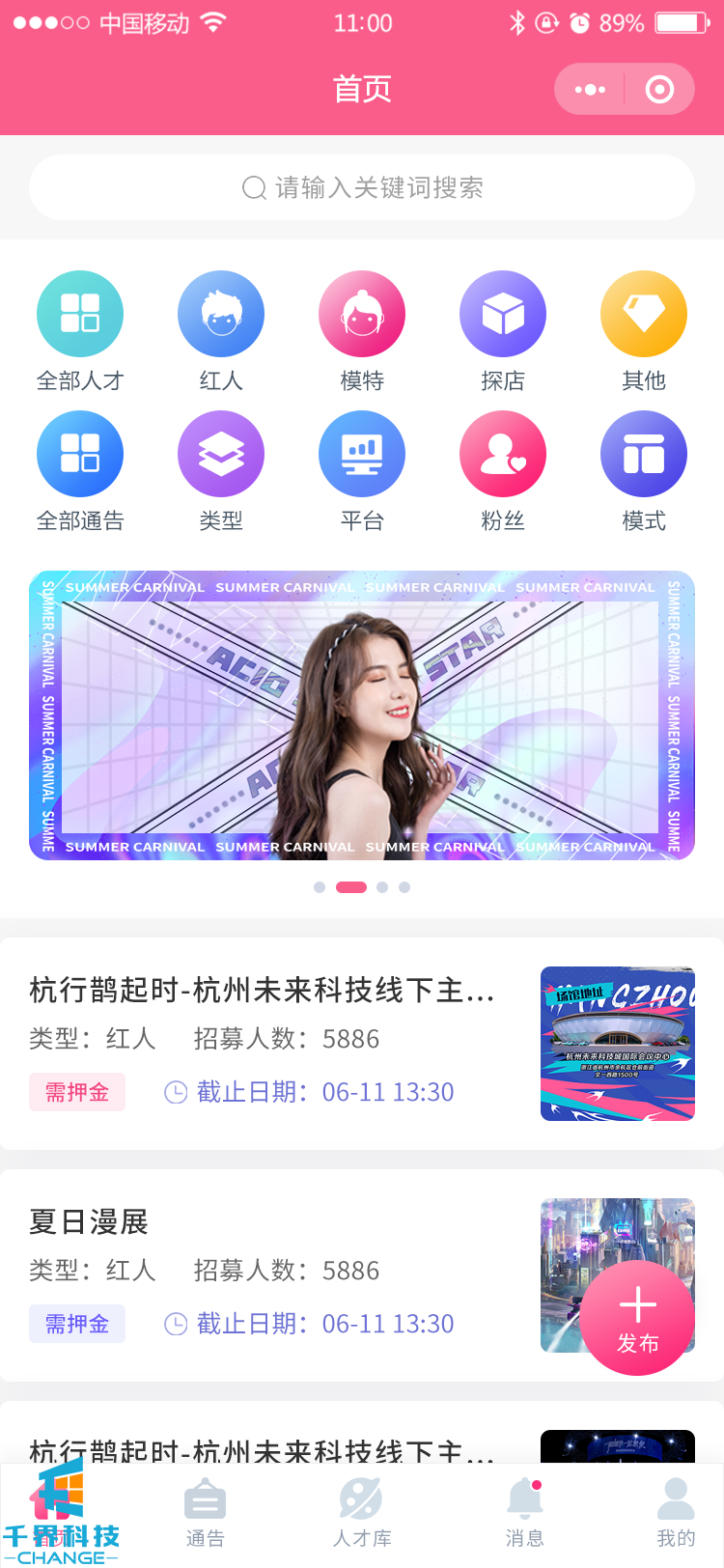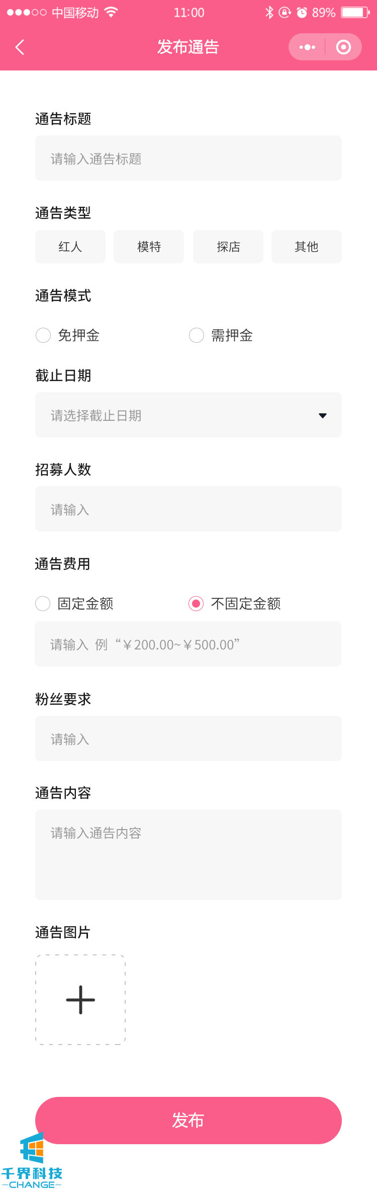 該項目結合人才模特,商家等角色。商家可以發(fā)布通告尋找人才提供拍攝服務(wù)。人才可以通過(guò)發(fā)布自己的作品增加曝光,類(lèi)似種草類(lèi)型的項目。主要解決商家和人才模特的資源共享。功能有發(fā)布通告,人才注冊,發(fā)布作品等