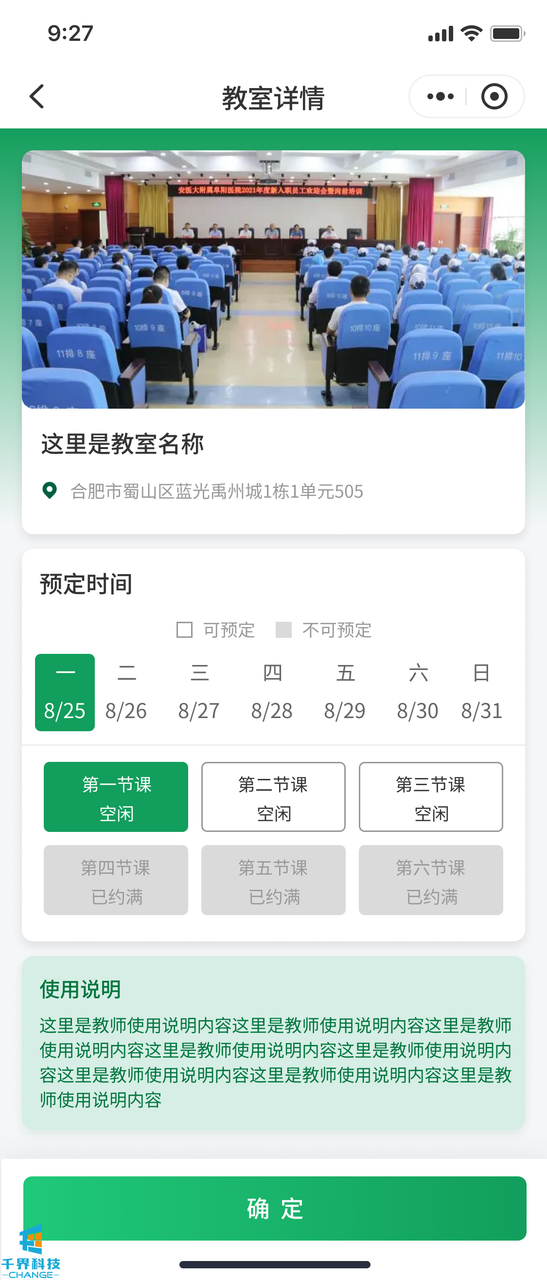 該項目是一個(gè)共享教室的小程序,學(xué)校將空閑教室打造成智慧共享教室,讓老師可以自行在小程序內進(jìn)行預約,預約時(shí)選擇空閑時(shí)間段,由對應的管理員進(jìn)行審核。預約成功后,該教室門(mén)禁系統在規定的時(shí)間內可以自行開(kāi)門(mén)/關(guān)門(mén),相關(guān)的智能家居也可以自行開(kāi)啟,同時(shí)對接的校園內的教務(wù)系統內的教室排班等。