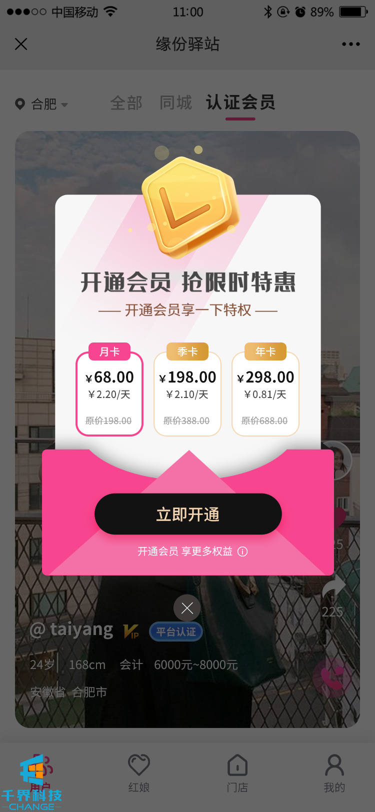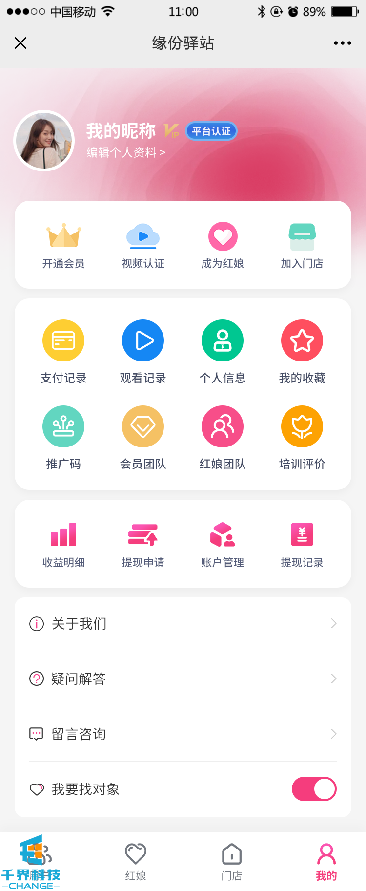 該項目是以抖音瀏覽的形式用戶(hù)注冊后查看其他相親對象的資料,有圖片,短視頻的形式展現,平臺有會(huì )員,紅娘注冊,視頻認證等服務(wù),門(mén)店可以申請注冊開(kāi)店,代理商分潤等功能