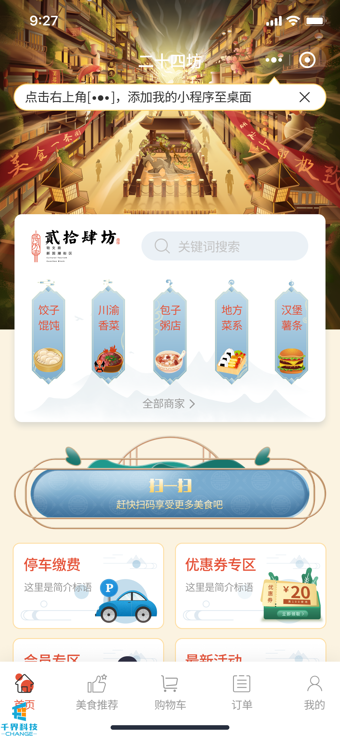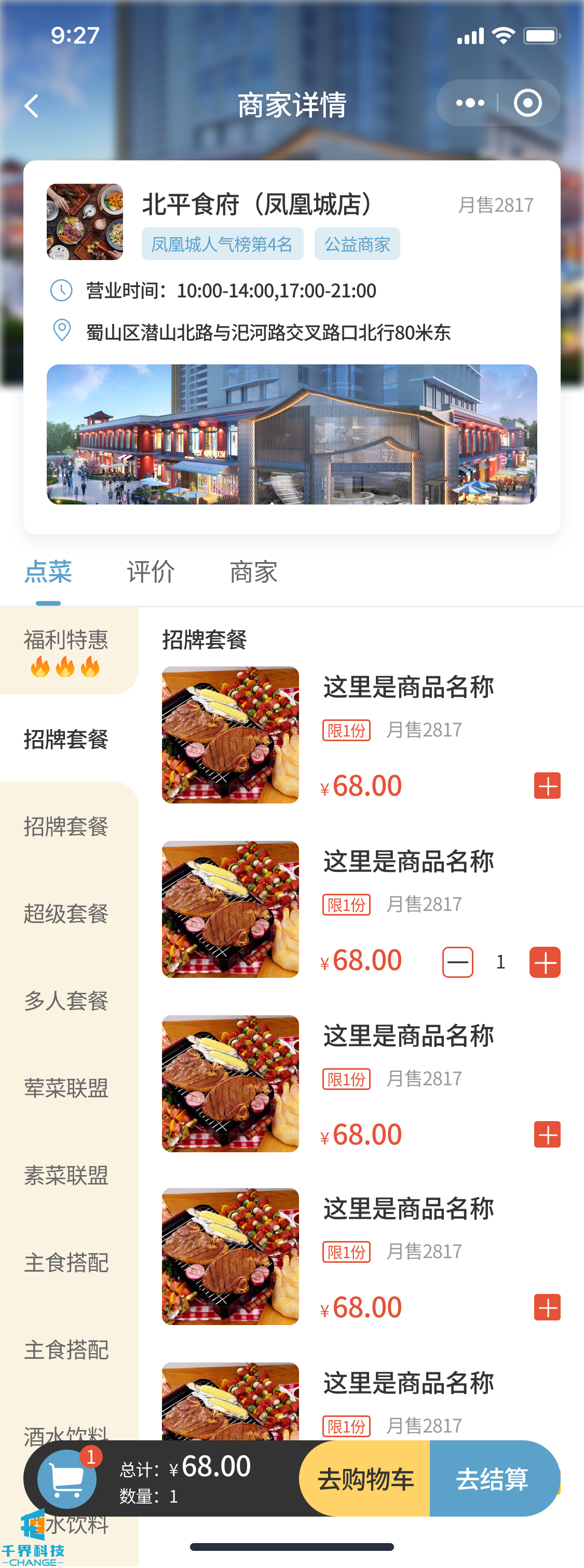 該項目是一個(gè)商業(yè)廣場(chǎng)使用的小程序,用戶(hù)可以在小程序內點(diǎn)餐、支付。所有商家在平臺內展示,用戶(hù)可以選擇門(mén)店堂食、外帶、卡座區域消費。支持多種點(diǎn)餐模式。商業(yè)街內配備騎手進(jìn)行取餐送餐。系統內有用戶(hù)端、商家端、騎手端、管理員端,配有會(huì )員體系、停車(chē)系統、活動(dòng)體系、優(yōu)惠券體系等,功能齊全。