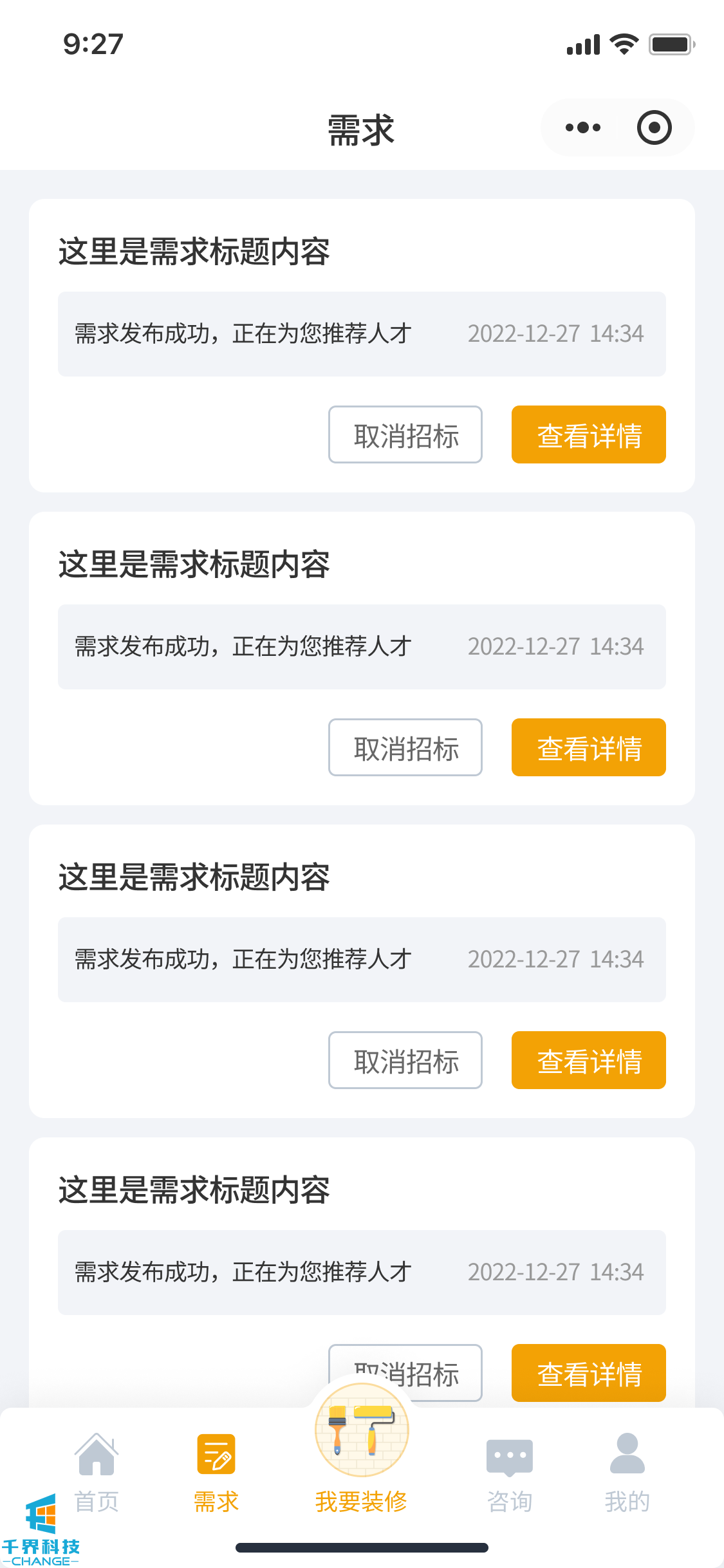 項目名稱(chēng):裝修小程序 項目類(lèi)型:小程序