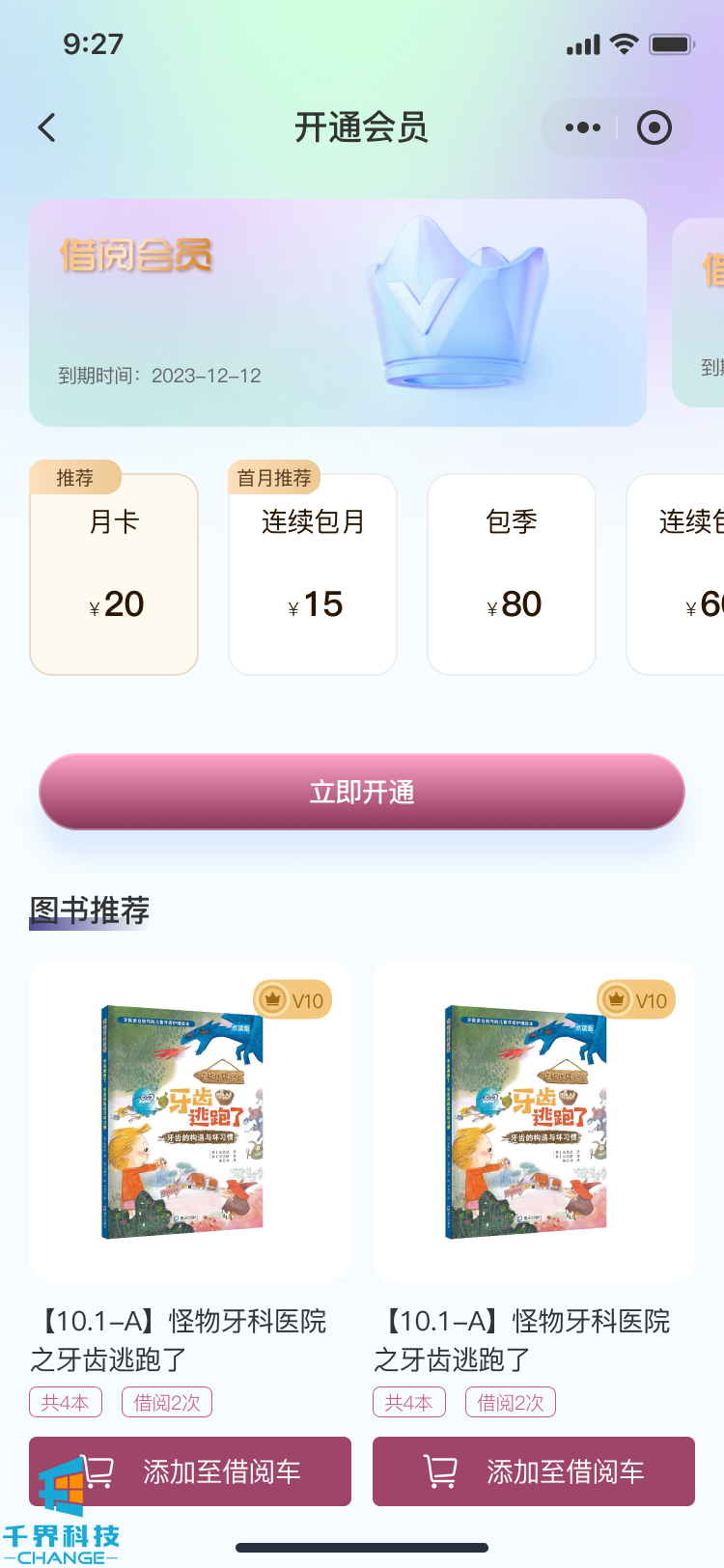 該項目是一個(gè)圖書(shū)借閱小程序,通過(guò)用戶(hù)的答題行為判斷用戶(hù)孩子的適讀讀物,并且有開(kāi)通會(huì )員預約課程功能。圖書(shū)借閱采用線(xiàn)上租借,線(xiàn)下取書(shū)及還書(shū)操作。