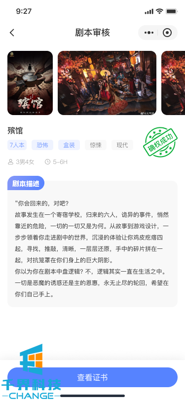 劇本殺審核小程序