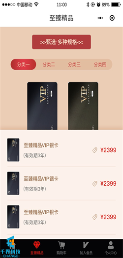 | 至臻精品 | 排版及功能 | 1.該頁(yè)面為全部商品及分類(lèi)頁(yè)。 2.對應橫向有幾個(gè)分類(lèi)按鈕,用戶(hù)切換不同分類(lèi)按鈕下方對應展示不同兌換卡。 3.整體風(fēng)格慘遭尊記大閘蟹分類(lèi)頁(yè)風(fēng)格一致,沒(méi)有“買(mǎi)四送一”這種營(yíng)銷(xiāo)活動(dòng)。 | |
