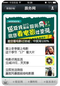 一對多的媒體性行為活動(dòng),如商家通過(guò)申請公眾微信服務(wù)號通過(guò)二次開(kāi)發(fā)展示商家微官 網(wǎng)、微會(huì )員、微推送、微支付、微報名、微活動(dòng)、微分享、微名片等,已形成了一種 主流的線(xiàn)上線(xiàn)下微信互動(dòng)營(yíng)銷(xiāo)方式.